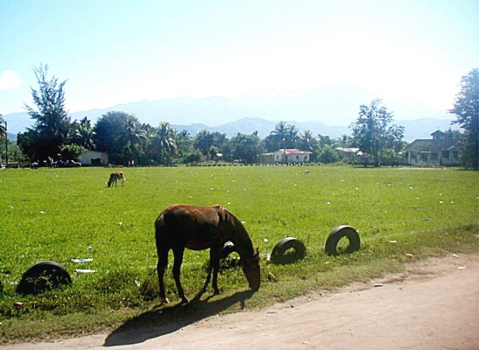 ※手前に『馬』。左奥に『牛』、さらに右奥にかすかに見えるのが『犬』です。ホンジュラスの「3大動物(僕が勝手に言ってるだけです)」が、夢の共演!!前代未聞の事態です!!