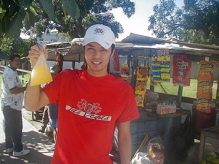…すると、いきなり『ぼろワゴン』が止まってしまいました!エンジントラブルです!日本車、しかも僕の故郷、広島の『マツダ』車だったため、Yojiに対するブーイングが起きます!けど、氷でエンジンを冷やして、何とか運転再開!!しかし、この後も約5回、『ぼろワゴン』は「止まって、エンジンを氷で冷やして」を繰り替えす事となりました……が、そういうトラブルは、むしろ楽しい!!日本では想像もつかないような出来事が、ホンジュラスや中国では起こる!!これが楽しいんですよ!!はは!!