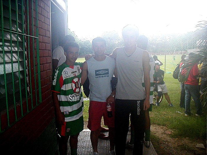 ※試合後、マラトンのアミーゴ、ホンジュラス代表マリオ・ベリオス(左)&同じくホンジュラス代表、マラトンキャプテン、ルイス・ギファロ(中央)と…。