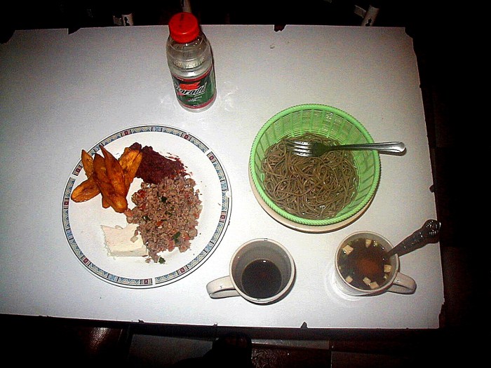 ※右がそば、左はママが作った、ホンジュラス料理、右下は、実家から送られてきた、味噌汁です!!