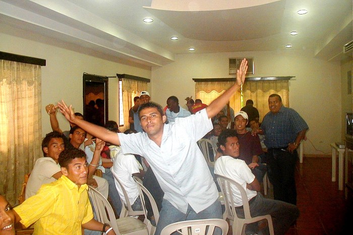 ※試合前日のレンカのミーティングにて。実はこのミーティングの際、不覚にも、うたた寝をしてしまい、危うく「罰金」を払うはめに陥りそうでした(笑)。ちなみに、僕の横に居るのは、レンカの会長です。どこだか分かりますか??