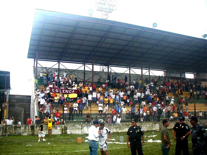 ※試合には、現ホンジュラス大統領のメル・セラヤ(写真左の、白い帽子をかぶったヒゲのおじさん)も観戦に訪れた。