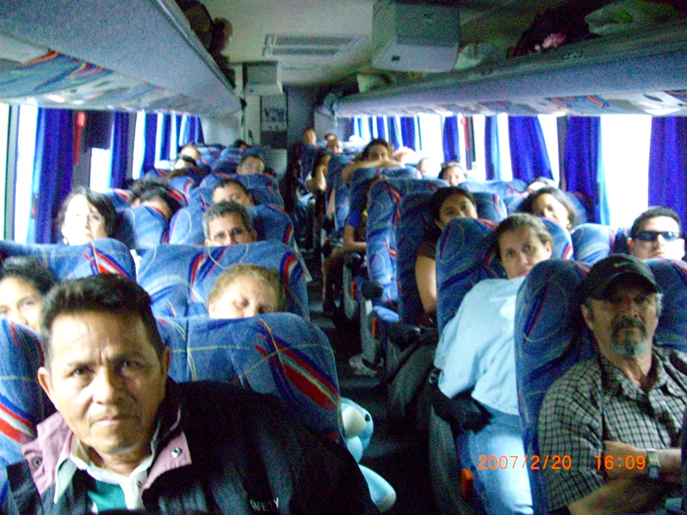 ※さらば「香港人」……(涙)。君の分も……。さあ、次なる目的地、コスタリカの首都「サン・ホセ」に向けて出発!!!!!(写真は、「ティカ・ブス」内の様子。)
