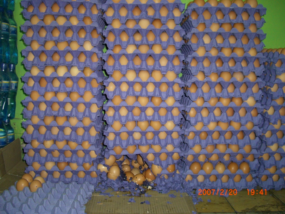 ※クリストフと語った、コスタリカの首都「サン・ホセ」の、とある喫茶店にて。陳列された「卵」ですが、よく見ると…。下の方がブッ壊れています(笑)。