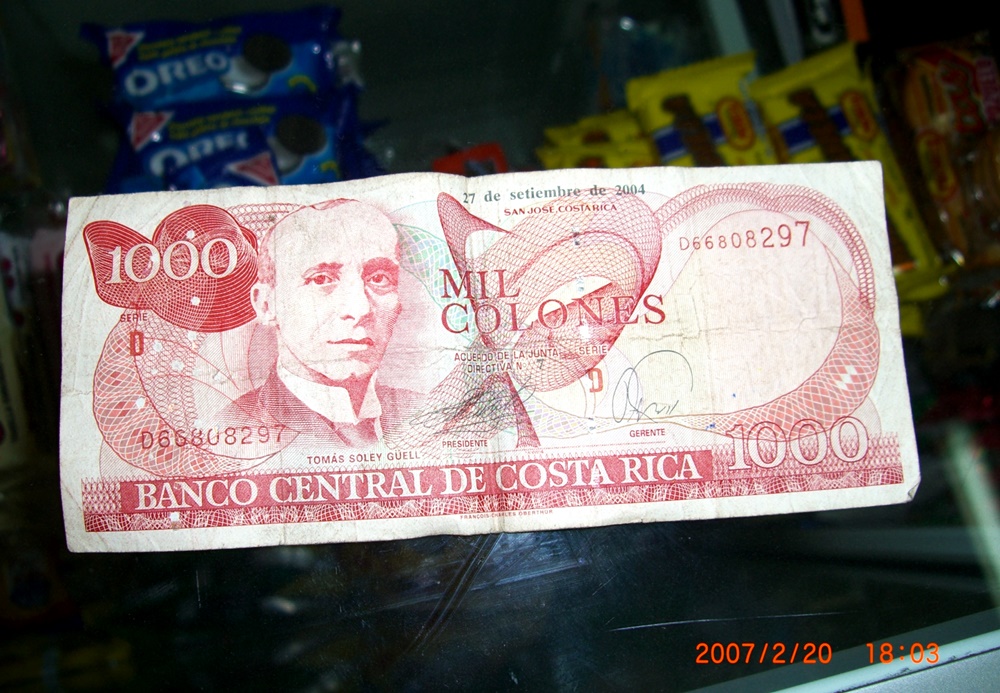 ※今度は、ニカラグア紙幣「コルドバ」から、コスタリカ紙幣「Colon(コロン)」に両替!!!毎日毎日、違う国の紙幣に両替なんて、生まれて初めての経験です!!凄く貴重な経験になりました。(写真は、両替屋)。