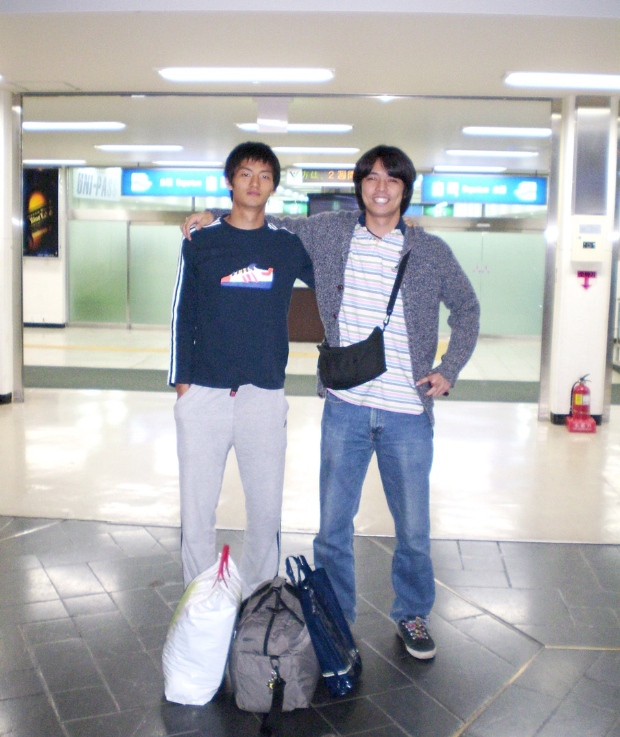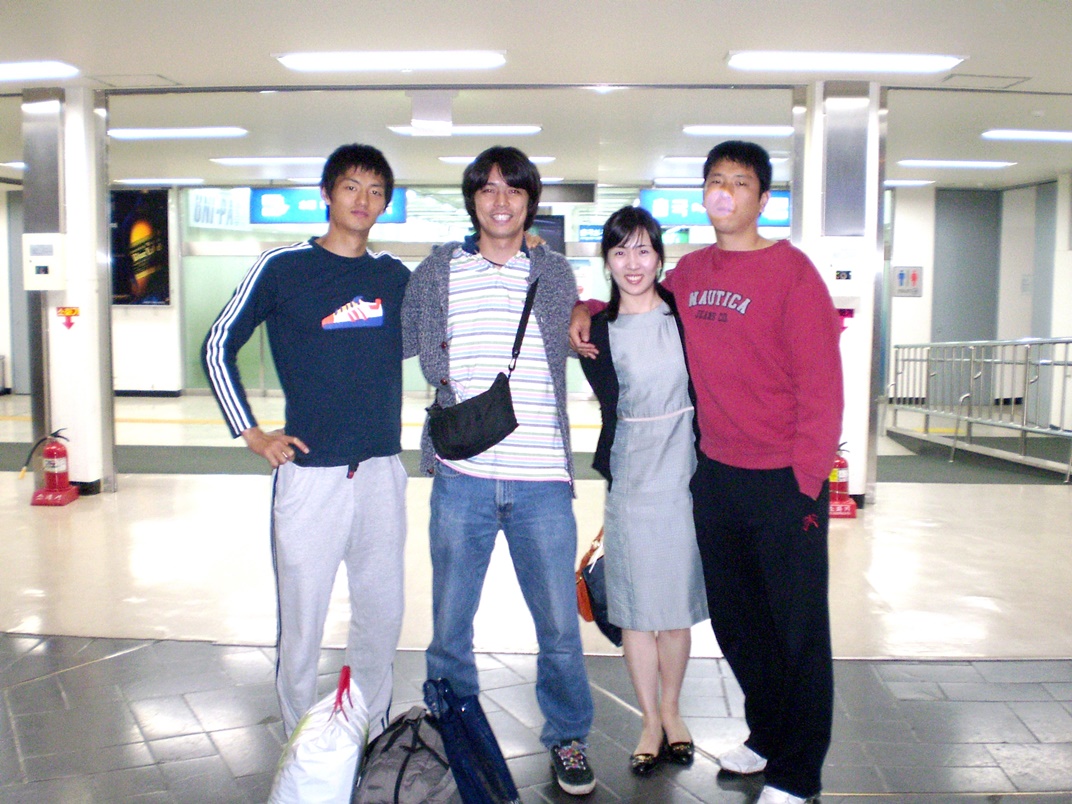 ※釜山港にて。いよいよ帰国の船に乗り込む直前…。安のマネージャー、そして、その彼女も見送りに来てくれました。カムサハンニダ!!(涙)