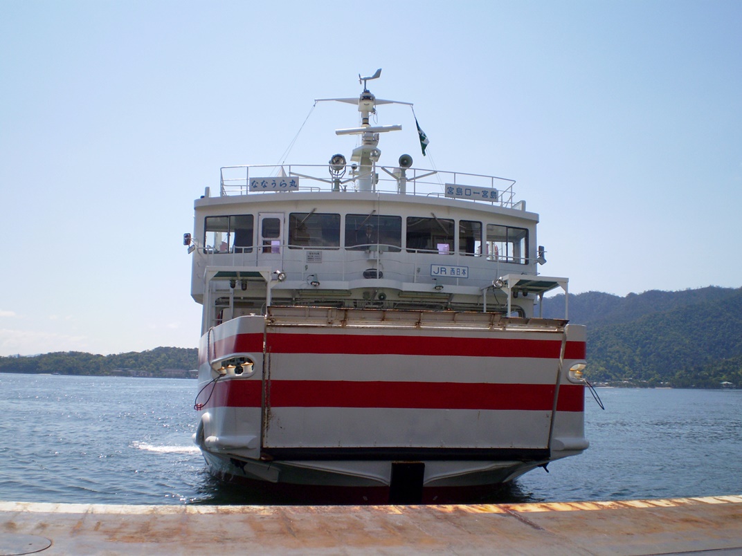 ※フェリーに乗って、宮島に向かいます。たった数分で、宮島に到着します。