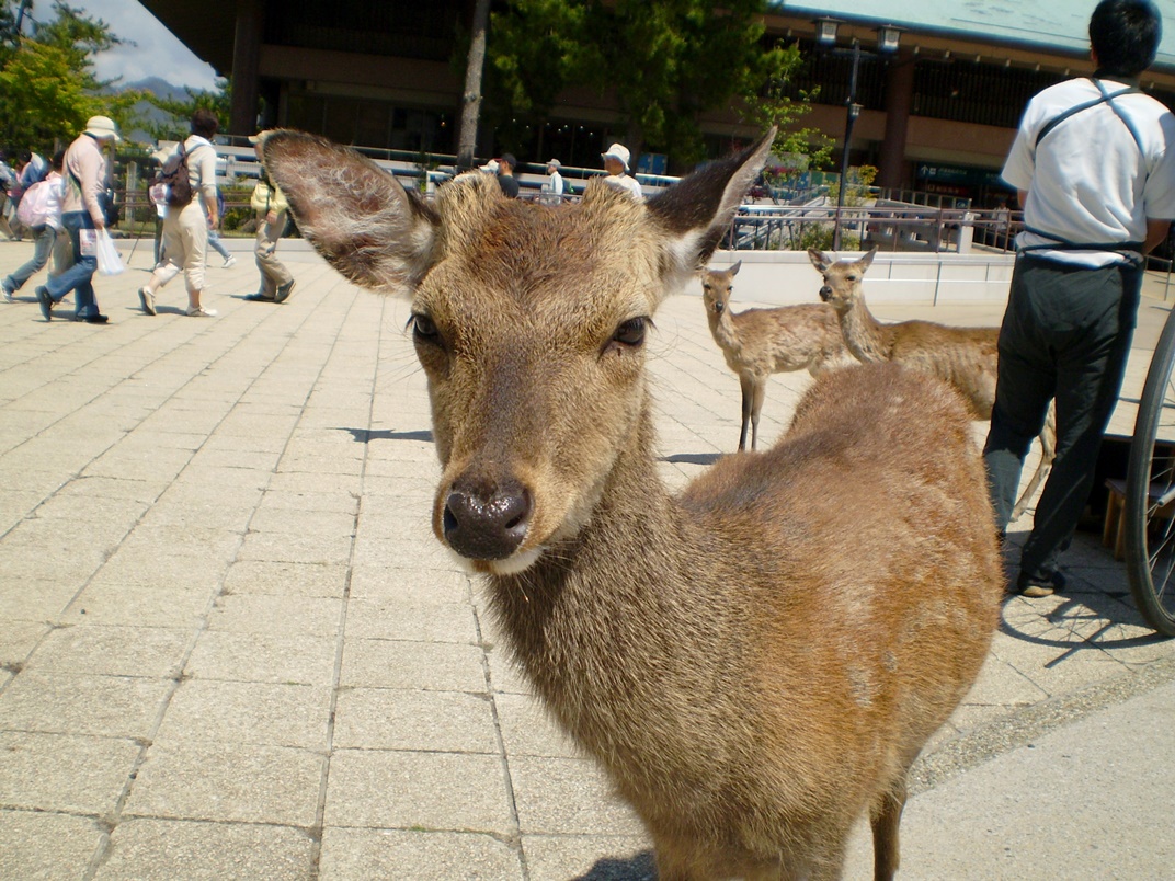※宮島と言えば、「鹿」です。カワイイ!!野生の鹿ですが、妙に「人間慣れ」しています。