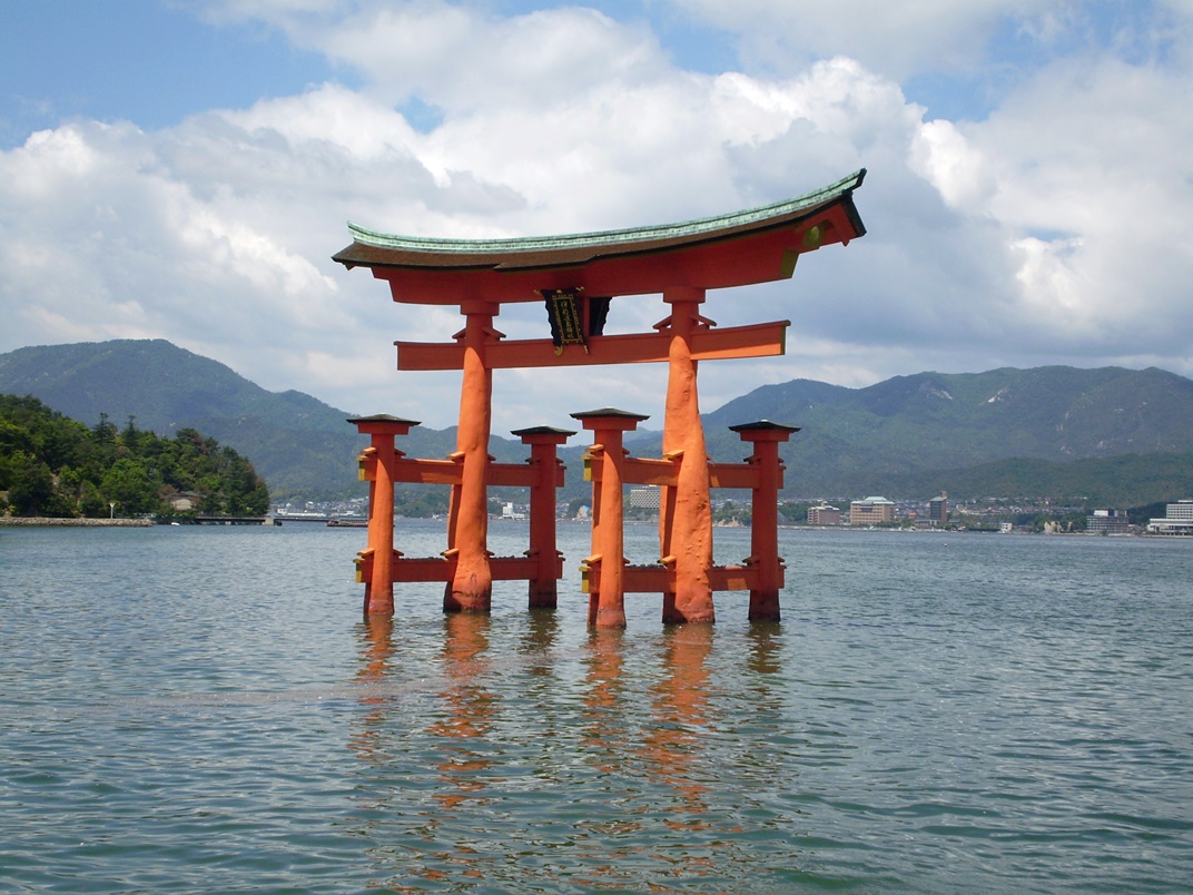 ※宮島から見た、「厳島神社の大鳥居」です。海に浮かぶ姿が、神秘的で、美しいです!!