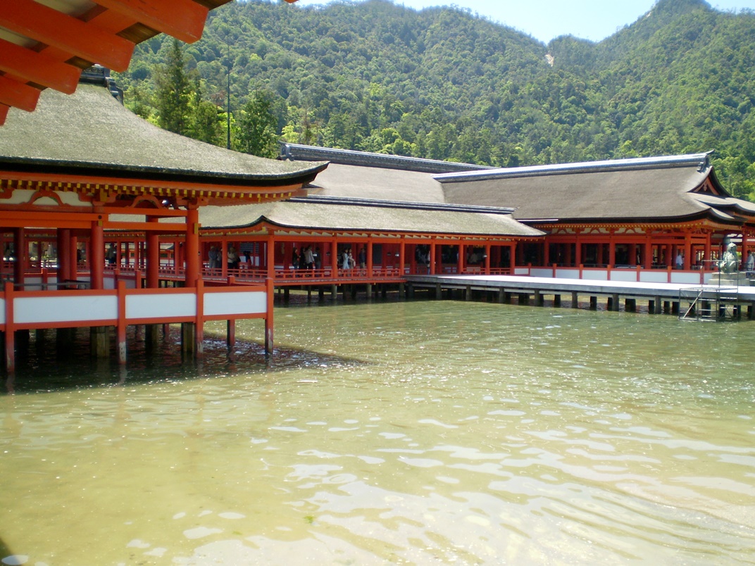 ※これが、「日本三景」、「世界文化遺産」の、「厳島神社」です。海に浮かぶ、世界的にも珍しい、芸術的な神社です!!(過去、台風で壊れたこともありますが、修復されました。)
