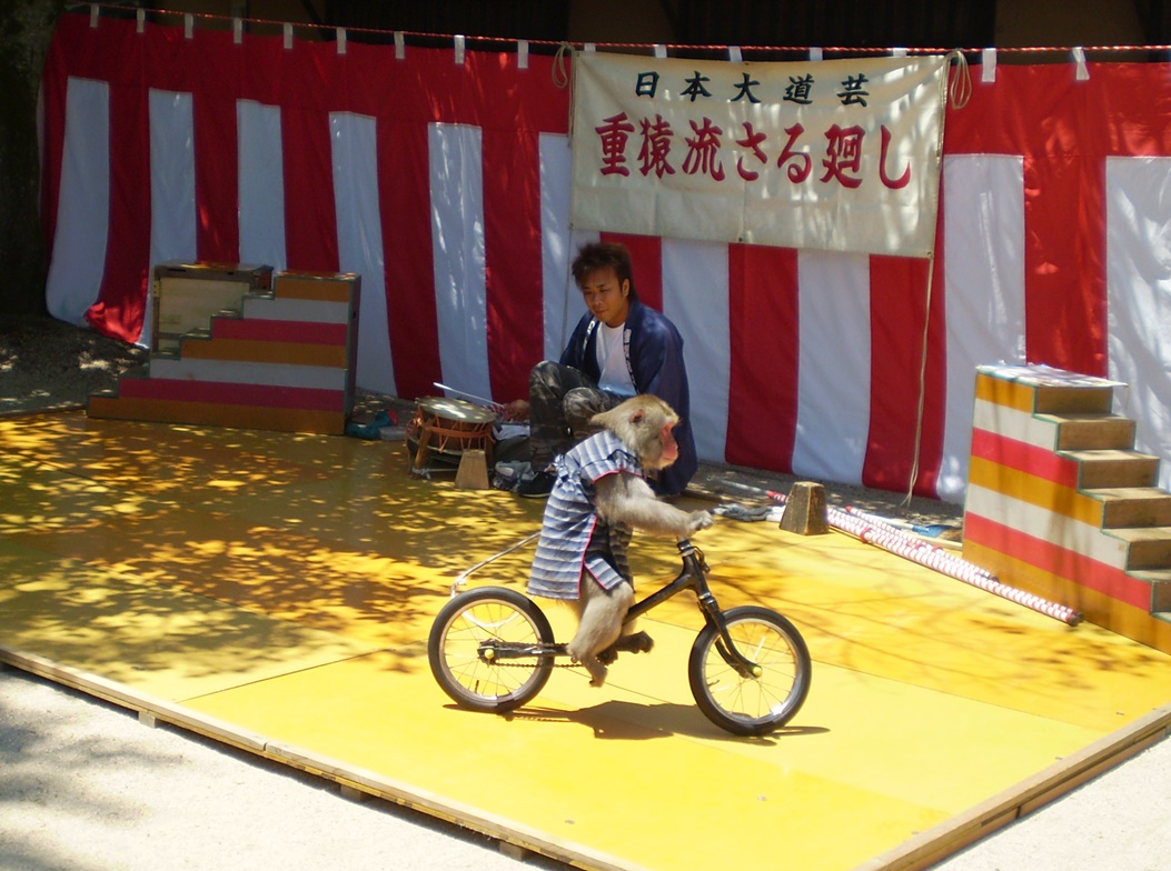 ※「厳島神社」を出ると…。こんなのやってました!(笑) 「さる廻し」! カワエエのぉー!!!