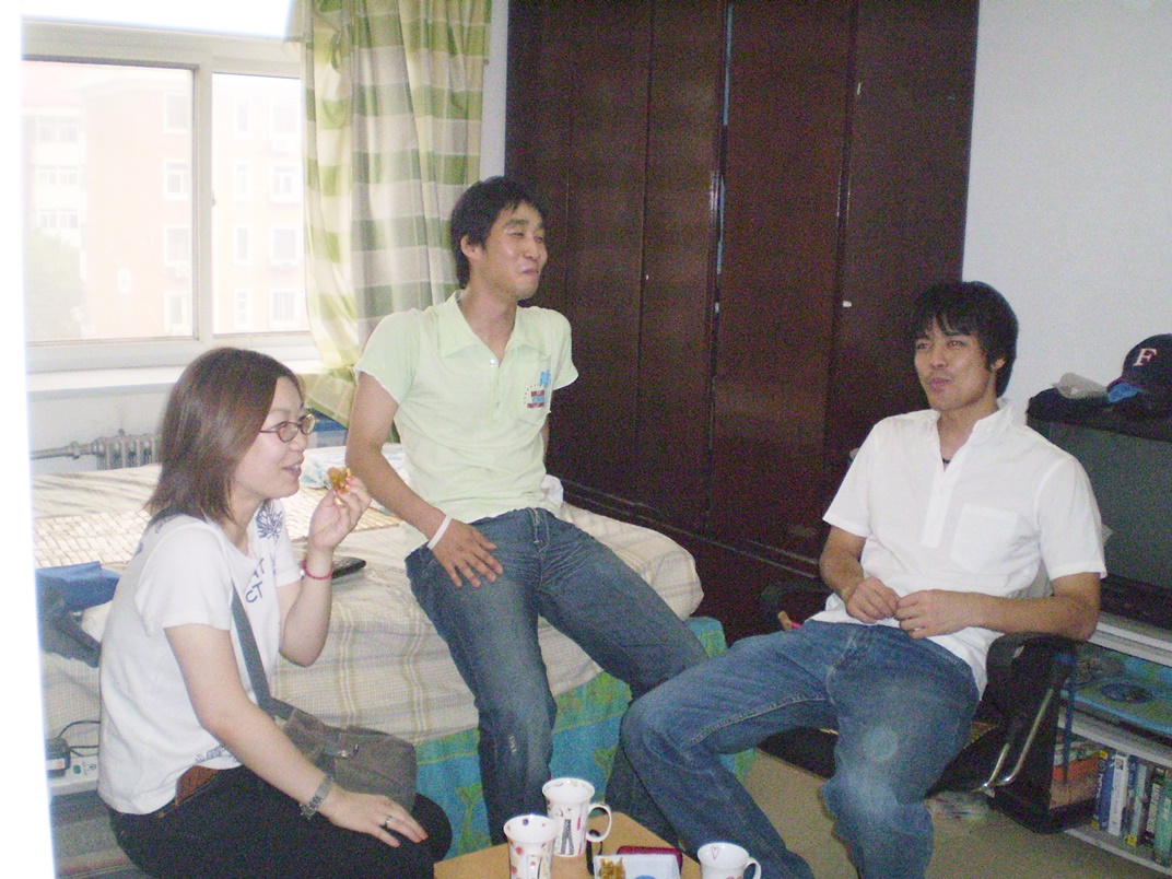 ※現在!2007年6月12日(火)。 留学時代の僕の住んでいたアパートのすぐ近くにある、当時の留学仲間の部屋で、談笑!!何気ない光景ですが、僕はこうして「3年半ぶり」に天津に帰還して、当時の留学仲間と談笑できる…という、大変、貴重な、『夢』のような時間を、とことん満喫して、思いっきり「幸せ」を噛み締めていました…。