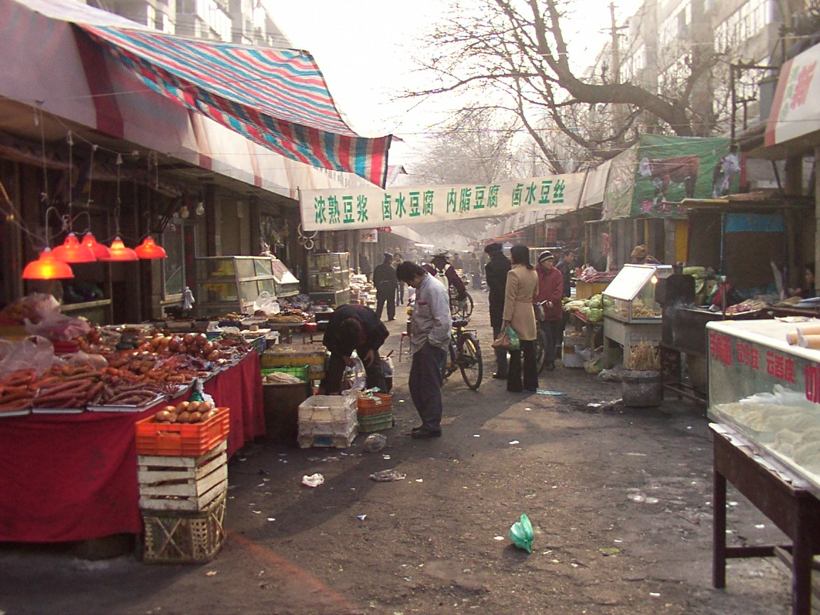 ※これは4年前の写真…。2003年。天津のとある、「市場」(「四号路」って名前じゃったかな!?)。確かに汚いのですが、ここには、本当に素晴らしい『笑顔』と、「人間らしい交流」が溢れていて、いつもここに来るのが本当に楽しみだったんです。4年経った今でも、存在するのでしょうか…??