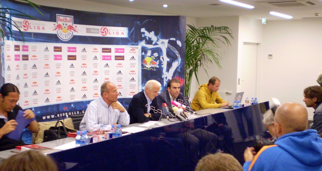 ※「レッドブル・ザルツブルグ」の監督・トラパットーニ氏の記者会見に潜入!「ヨーロッパはセキュリティが厳しい。」と思っていたのですが…ありゃりゃ!?…簡単に潜入できちゃいました!!日本じゃ「ありえない!」ことです。