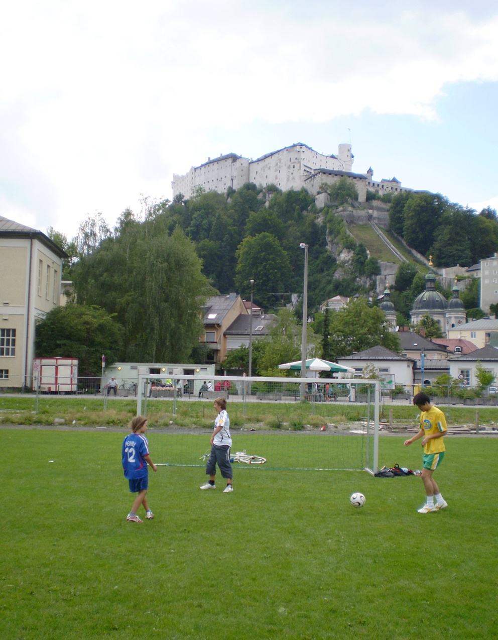 ※ザルツブルグの美しい景色を背に(後ろの城は、前回の記事に書いた、例の「毎日、走って上っている」城です!)、ついについに、オーストリア上陸後「初めて」ボールに触ったYoji!!(涙) やっぱ、サッカーは最高です!!(涙)