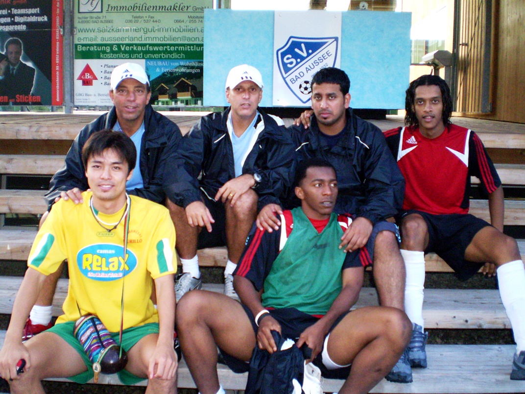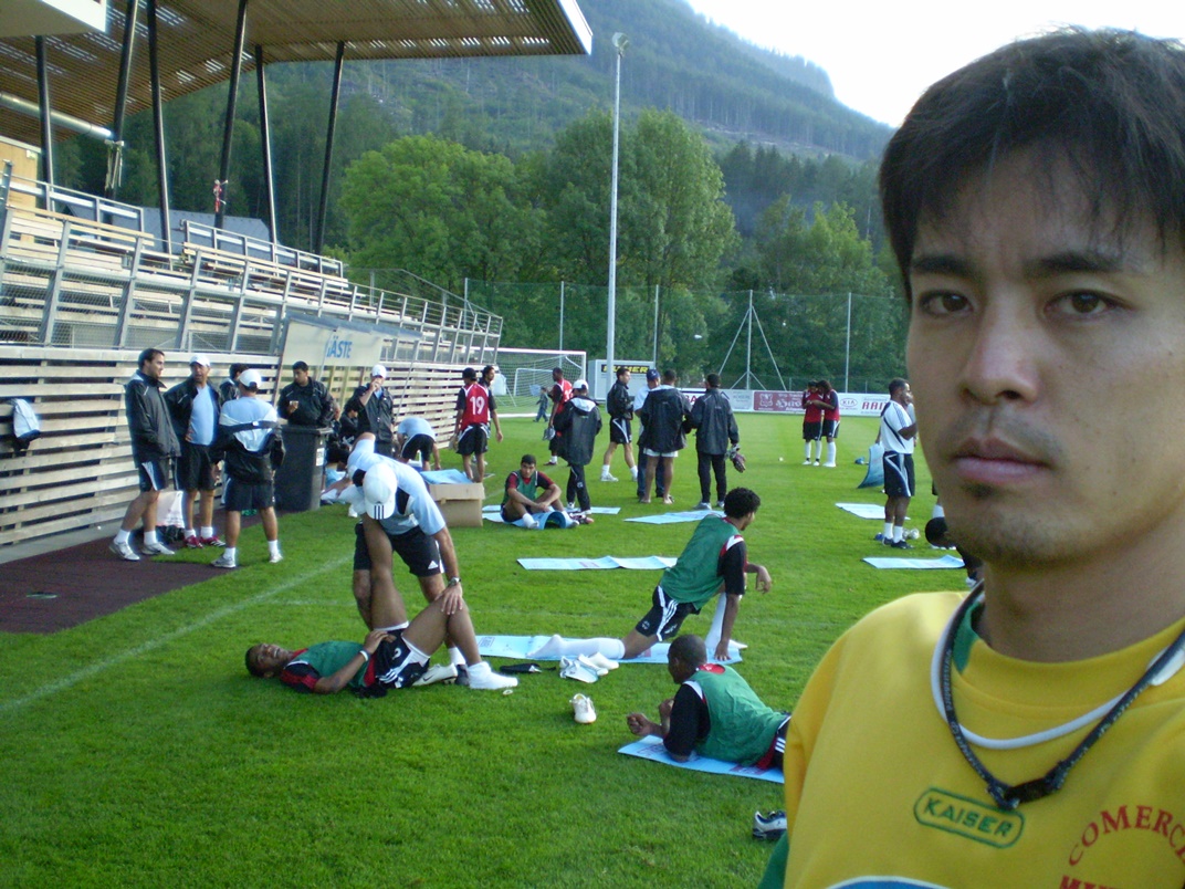 ますます、わけが分からなくなります(笑)。このコーチの名前は、マルキーニョ。GKコーチです。ちょっとネットで調べたところ、「JリーグでGKコーチをしていた。」というのは、本当でした。我らが「KINGカズ」こと、三浦知良選手とはブラジル時代からの旧知の仲のようで、結婚式にも出席したそうです。その他には、現在、東京ヴェルディ監督のラモス氏、サッカー解説者の松木安太郎氏、都並氏…などとは凄く仲が良いらしく、いろいろ嬉しそうに、「日本語」で語ってくれました。話だと、各年代の日本代表のGKコーチもしたことがあるらしく、現日本代表GKの楢崎選手や、元日本代表GKの土肥選手、下田選手も指導したことがあるそうです。向こうもまさか、こんなオーストリアのド田舎で、「ニホンジンGK」と出会うなんて思いもよらなかったからか、本当に嬉しそうに、「日本語」で話してくれました。僕が世界のどこに居ても、中国人を見つけると「中国語」で無性に話しかけたくなる…のと同じような感じなのでしょう(笑)。