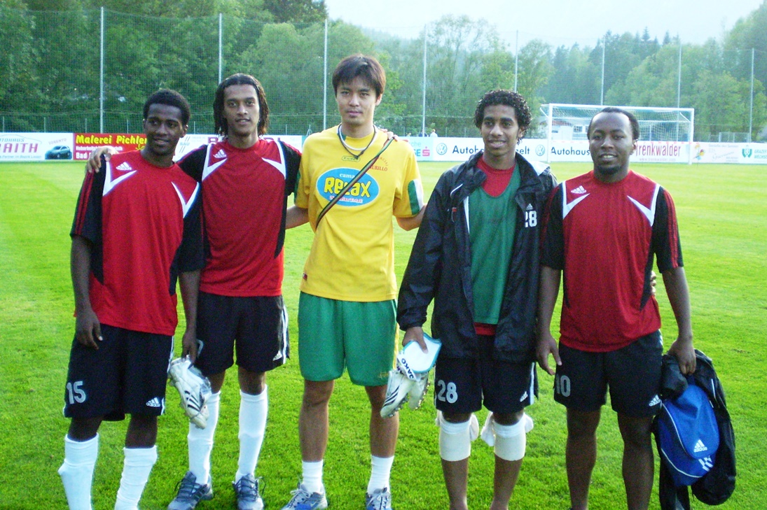 何と、この謎の「全員黒人選手のチーム」は、「UAE(アラブ首長国連邦)」のチャンピオンチームで、現在、「アジア・チャンピオンズリーグ」でも決勝トーナメントまで勝ち残っている、「アル・ワハダ」というチームだったのです。確かによく見ると、先日の「アジア・カップ」の日本戦にも出場していた、UAE代表選手が、何人か居るなぁ~…。…って言うか、何でUAEのチームが、オーストリアのこんなド田舎に居るのよ!!??(←どうも、強化合宿で来ていたようです。)