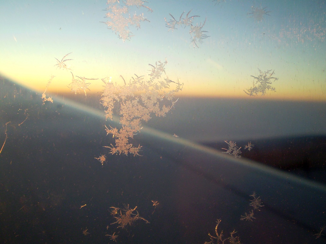 ※あまりに寒過ぎて、飛行機の窓が少し凍ってます。今まで何度となく飛行機に乗ってきましたが、こんなの初めてでした!!(由于太冷,机的窗户结冰了一点。然我坐好多次机,但是从来没有看这样!!)