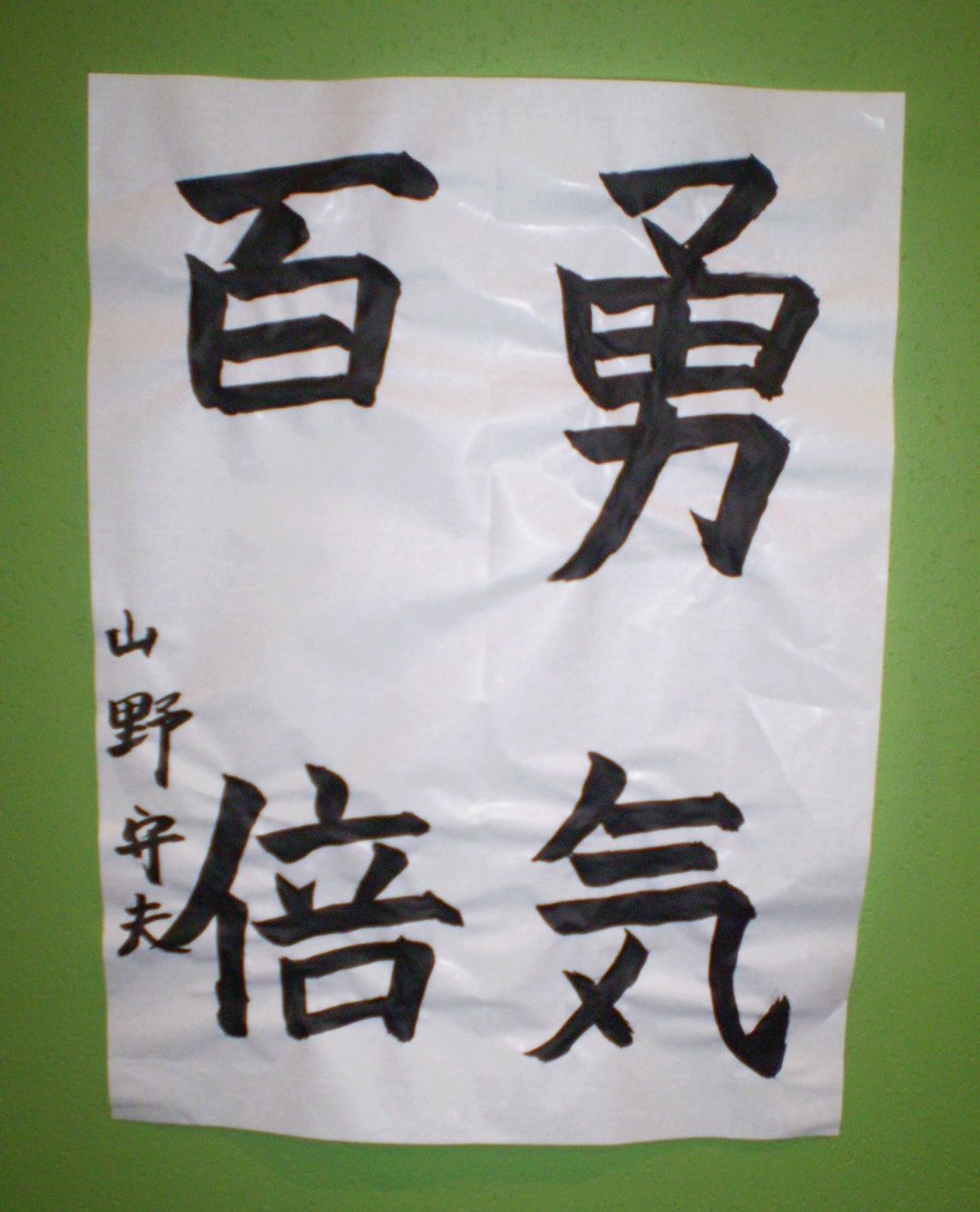 ※ おじいさんが書いた「勇気百倍」。これを見ると、僕の勇気は「千倍」になります。