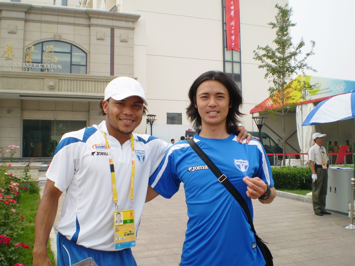 ホンジュラス五輪代表のコーチたちでした。向こうも、僕が着ていたホンジュラス代表のユニフォームを見て、興味を示して近付いてきました。アジア人でホンジュラス代表のユニフォームを着て歩いてる人間なんて、いくら広い中国と言えども、僕以外には皆無に等しいですからね…。