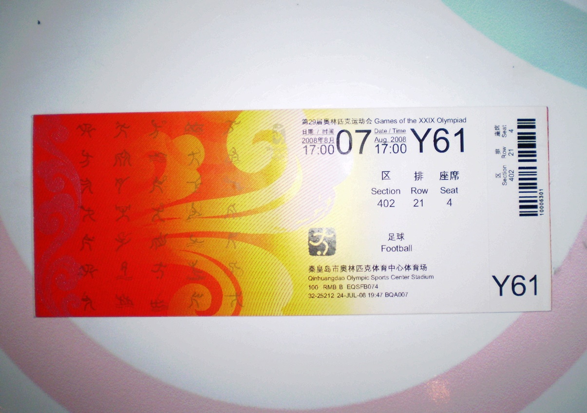 これが「2008年8月7日(木) ホンジュラス五輪代表の初戦・イタリア戦」のチケット!!!