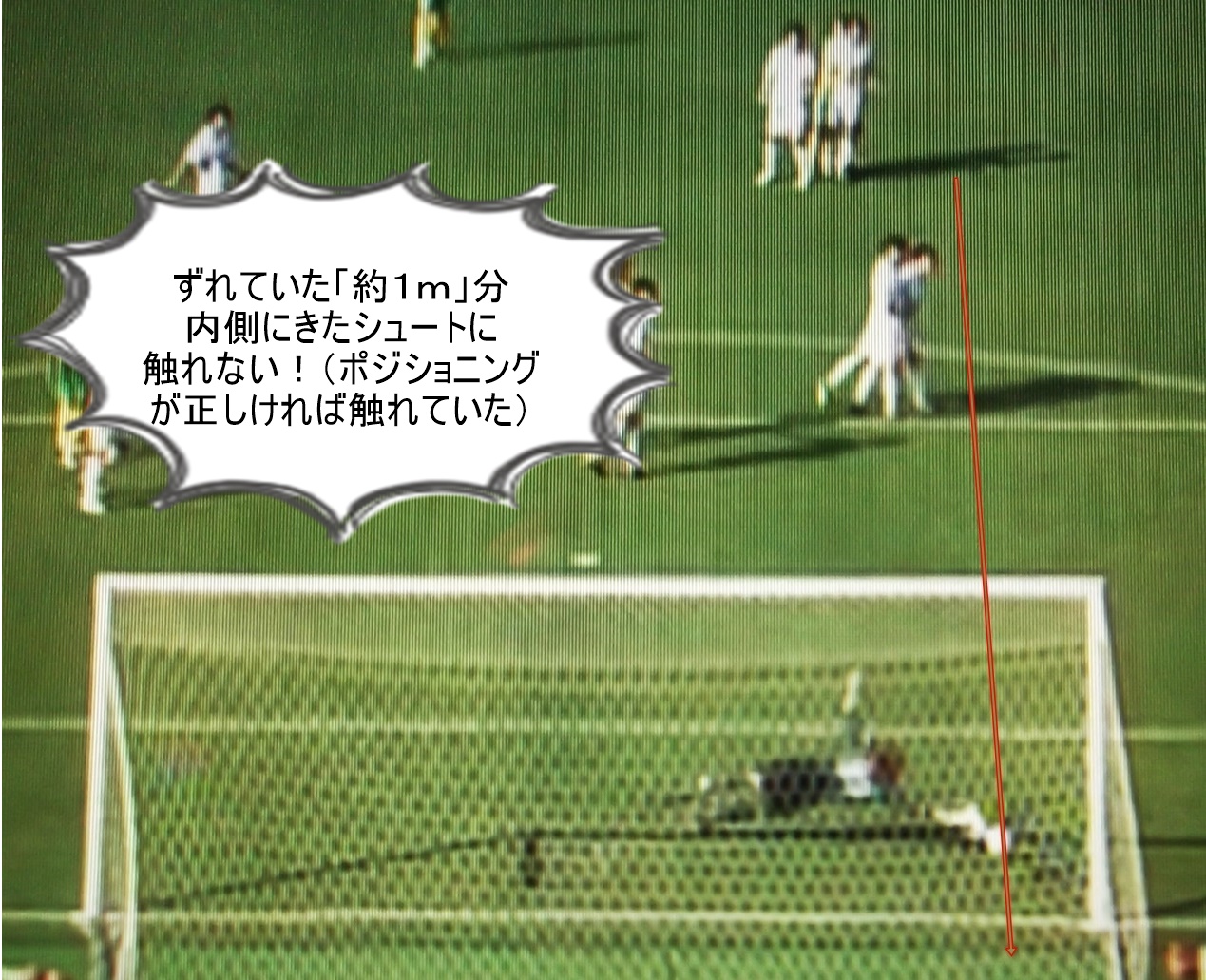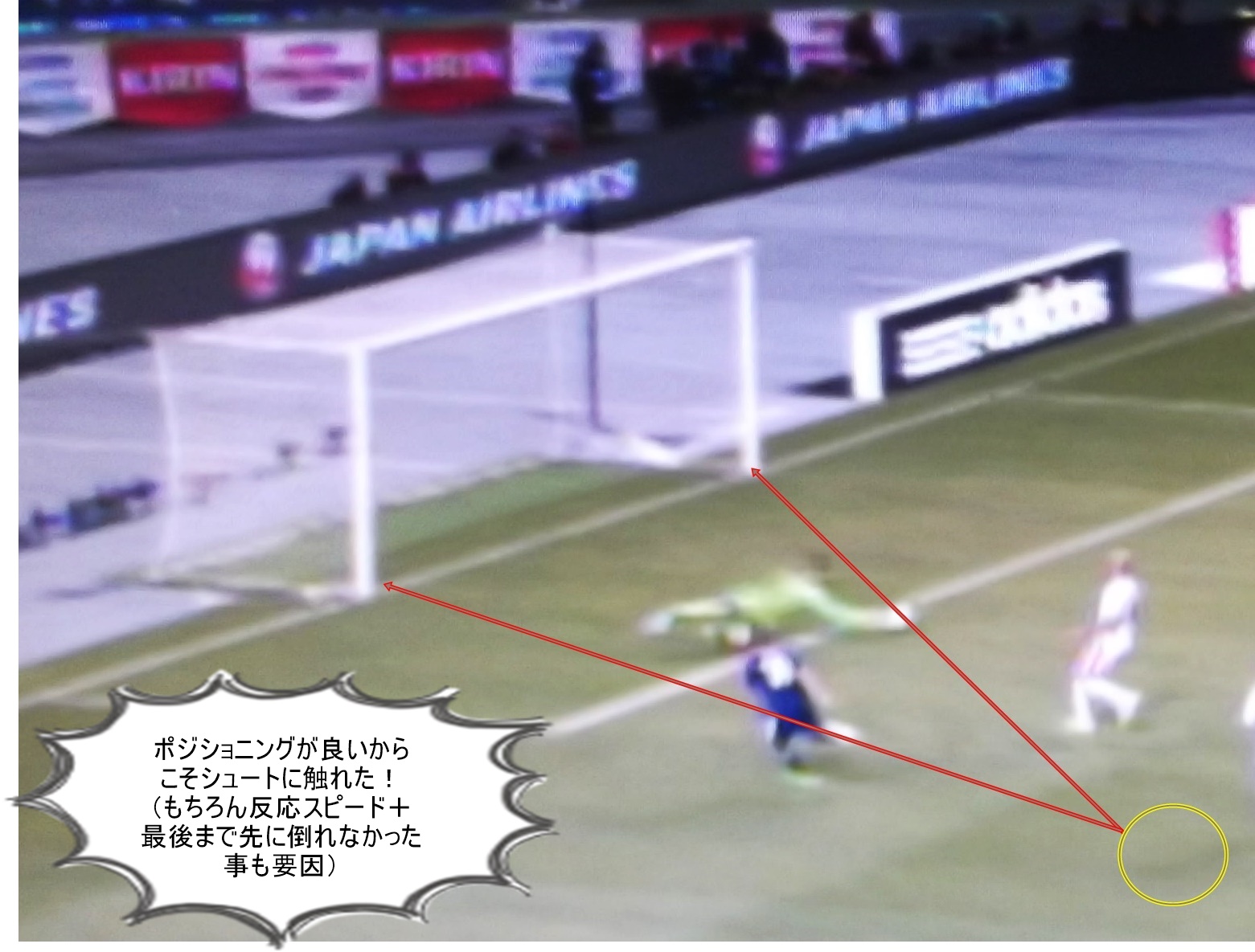 上の写真で見ても分かるように、もしこのチュニジアGKのポジショニングが「10cm」でもズレていたら、シュートに触る事はできなかったでしょう。普通にゴールが決まっていたはずです。