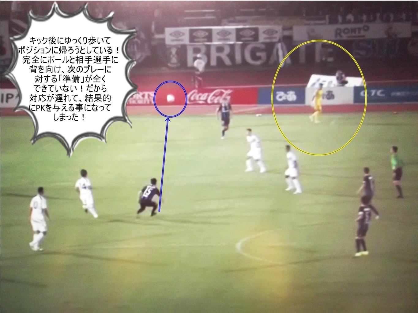 確かに河田選手は、この失点に繋がる「キックミス」を犯してしまいました。…が、僕は例えこのキックミスがあったとしても、それでもなお「この失点は防げていた」と考えます。
