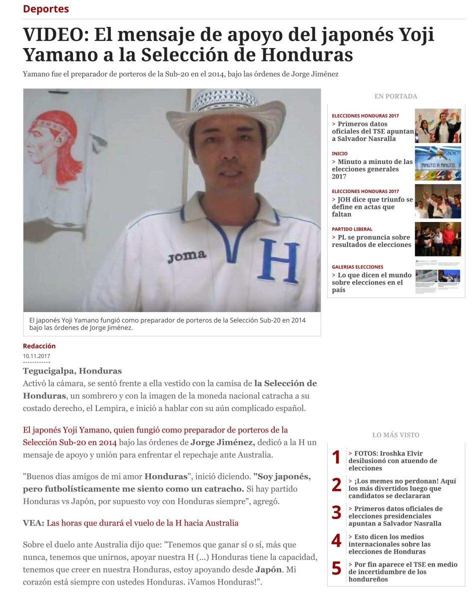 VIDEO_ El mensaje de apoyo del japonés El Heraldo 投稿日: 2017年11月27日 @ 2134 × 2711 | ホンジュラスメディアに特集され「とんでもない事」になる。Muchas gracias Honduras! 次へ →