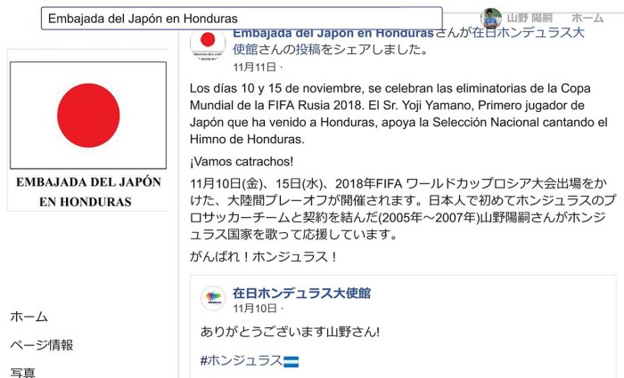 こうして「在日ホンジュラス大使館」と「在ホンジュラス日本大使館」双方に取り上げて頂き、心からの感謝の気持ちで一杯です。