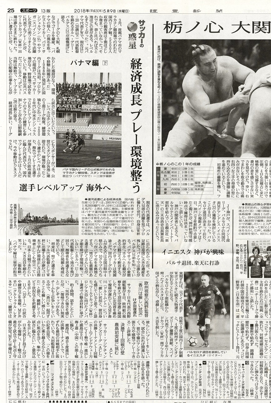 2018年5月9日(水)読売新聞 サッカーの惑星 デリー・バルデスと共に掲載 投稿日: 2018年5月23日 @ 868 × 1289 | 読売新聞に、「パナマの怪人」デリー・バルデスと共に掲載されました。 次へ →