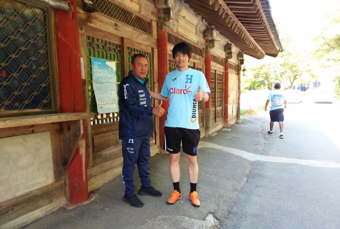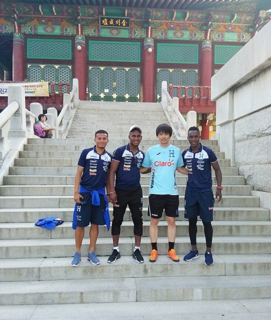 ※ジョー・べナビデスと。彼もU-20ホンジュラス代表GKコーチ時代のチームメイトで、キャプテンを務めていました。今回、約3年半ぶりの再会。無口ではありますが、熱いハートをもち、スピードとテクニックを兼ね備えた素晴らしい選手です。リオ五輪ベスト4のメンバーでもあります。今回の韓国遠征でも練習から素晴らしいプレーでアピールを続け、韓国代表戦でも途中出場からキレッキレのプレーで相手に脅威を与えました。着実に成長しているので、今後に期待大です。