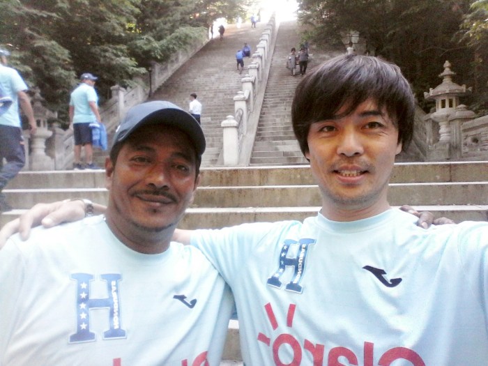 ※ウティレロ(用具係。ポルトガル語では「ホペイロ」)のアグスティン・メヒアと。あだ名は「ティン」。ティンとはU-20ホンジュラス代表GKコーチ時代にチームメイトとして共に戦い、W杯予選(☜)でもルームメイトで、「良好な関係」と「強い絆」を築きました。昨年、U-20ホンジュラス代表が静岡に来た時(☜)以来、丁度1年ぶりの再会。彼との「良好な関係」と「強い絆」も、より一層、深まりました。
