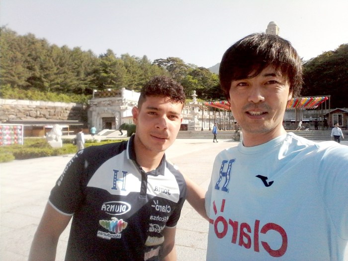 ホンジュラスA代表。韓国テグ近郊のお寺にて記念撮影。下に韓国人の子供が。実は全然知らない人なんだけど親が「ホンジュラス代表だ!一緒に写真に写ってこい!」と子供を入らせてパシャりw後で親も入ってきてパシャりwここで一歩を踏み出せる韓国人の凄さwそれを気にしてないホンジュラス人もw pic.twitter.com/gZDKGYPHK6
