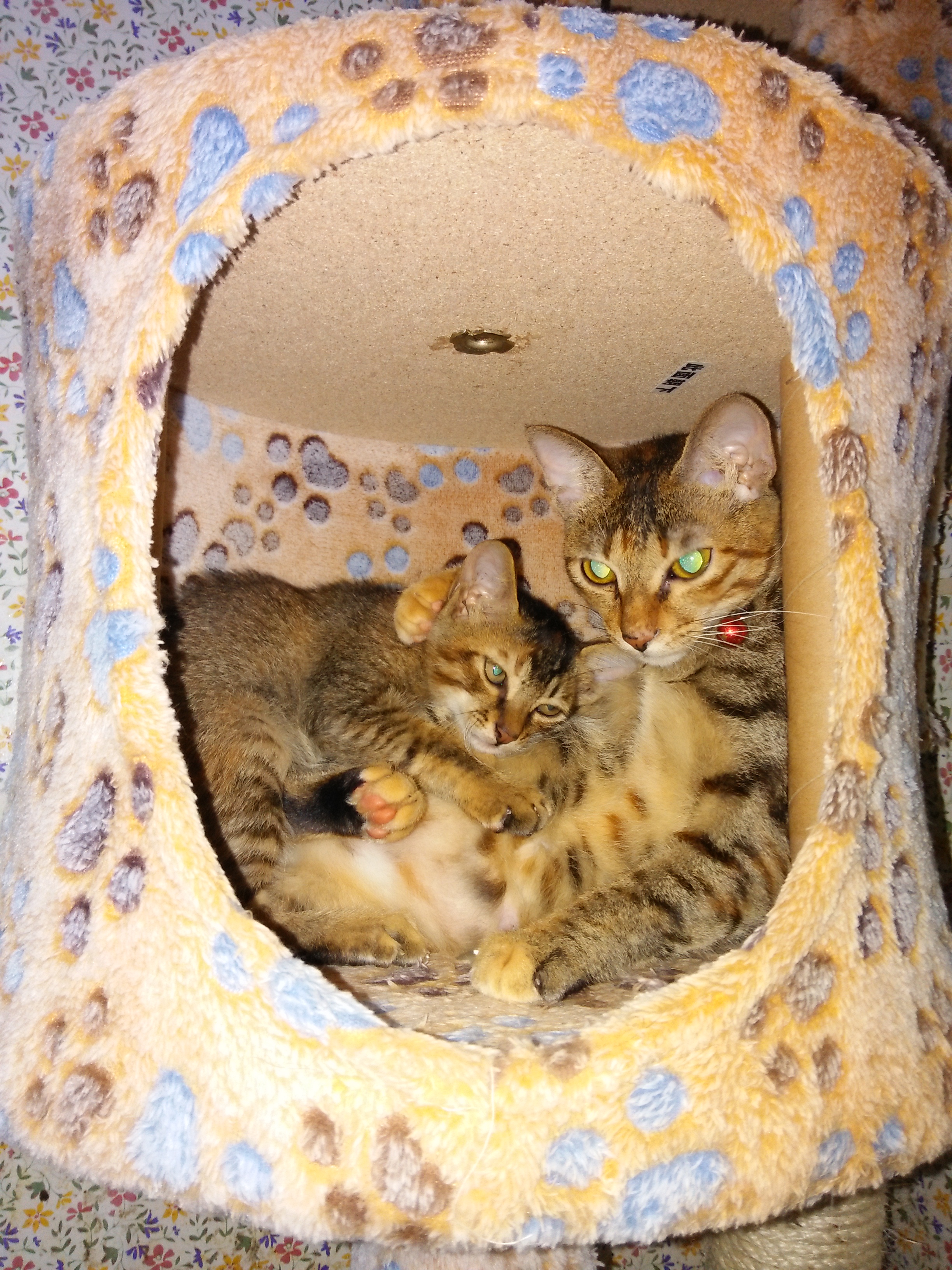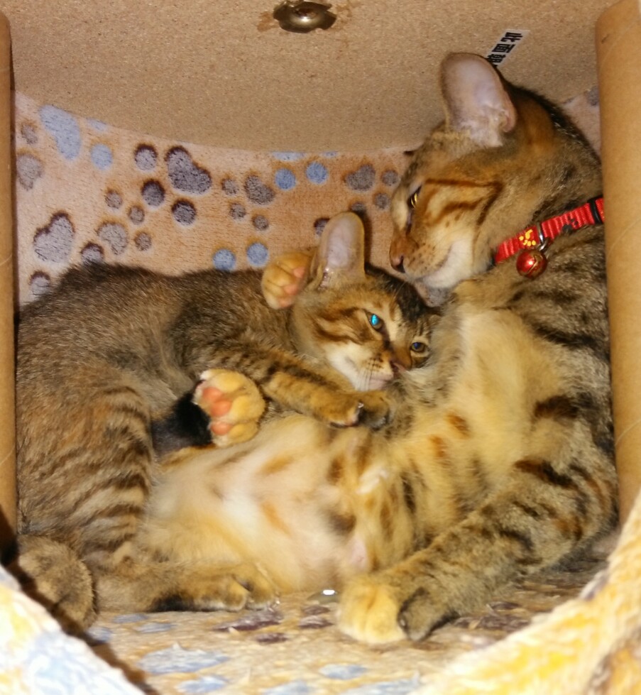 ※慣れてからは、すっかりリラックスして幸せに暮らしています。本当に、いつも一緒の2匹。狭いケージの中ではできなかった、じゃれ合う光景も…。感無量です…。