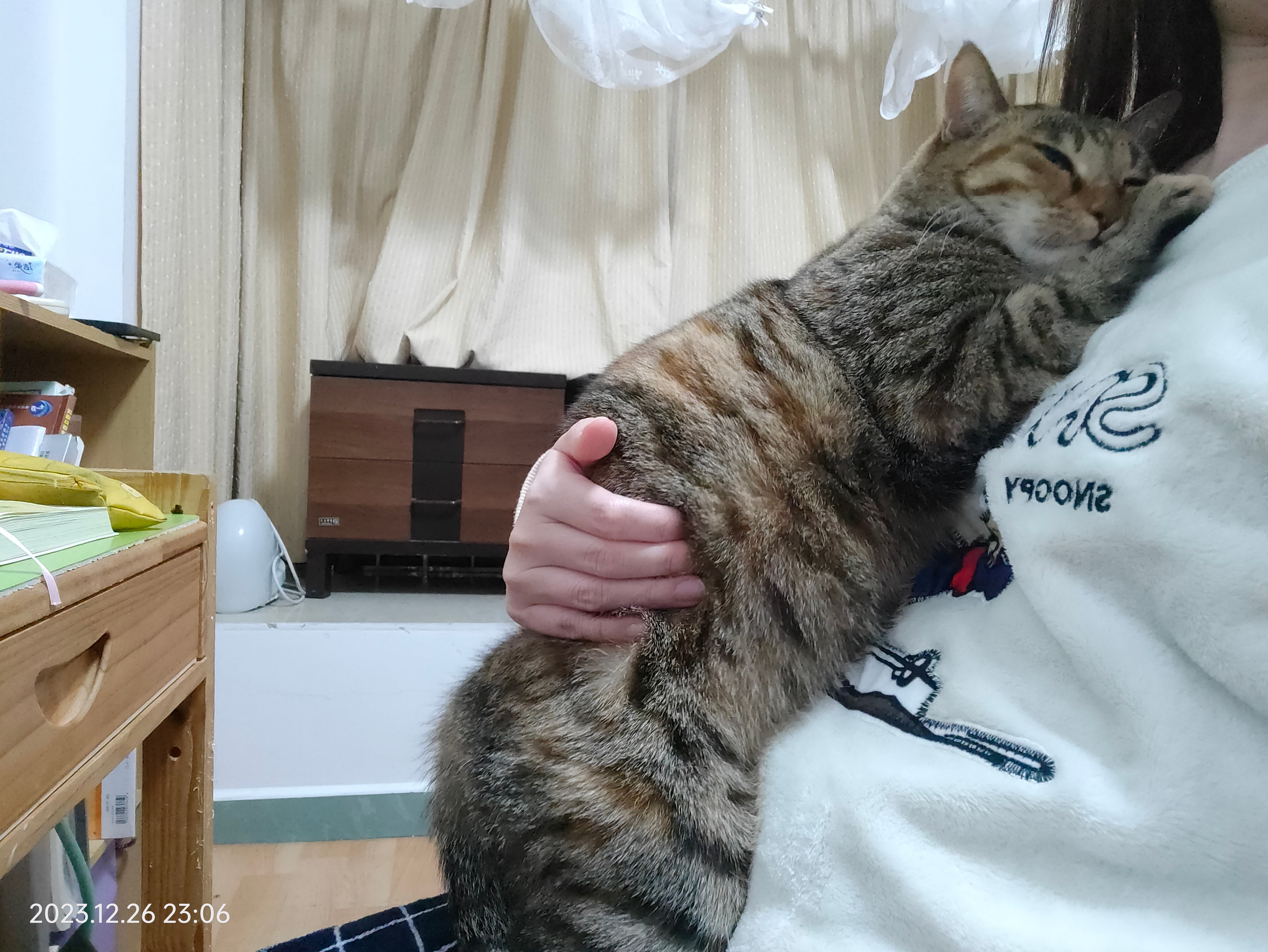 ※新たな飼い主(僕の天津留学時代の友達)に甘えるジチマオ。すっかり懐いています(よく膝に乗ってくるのだとか)。6年間ずっとケージの中で暮らしてきたジチマオとメイメイ。やっと幸せになった姿を見て、感動して涙が…。