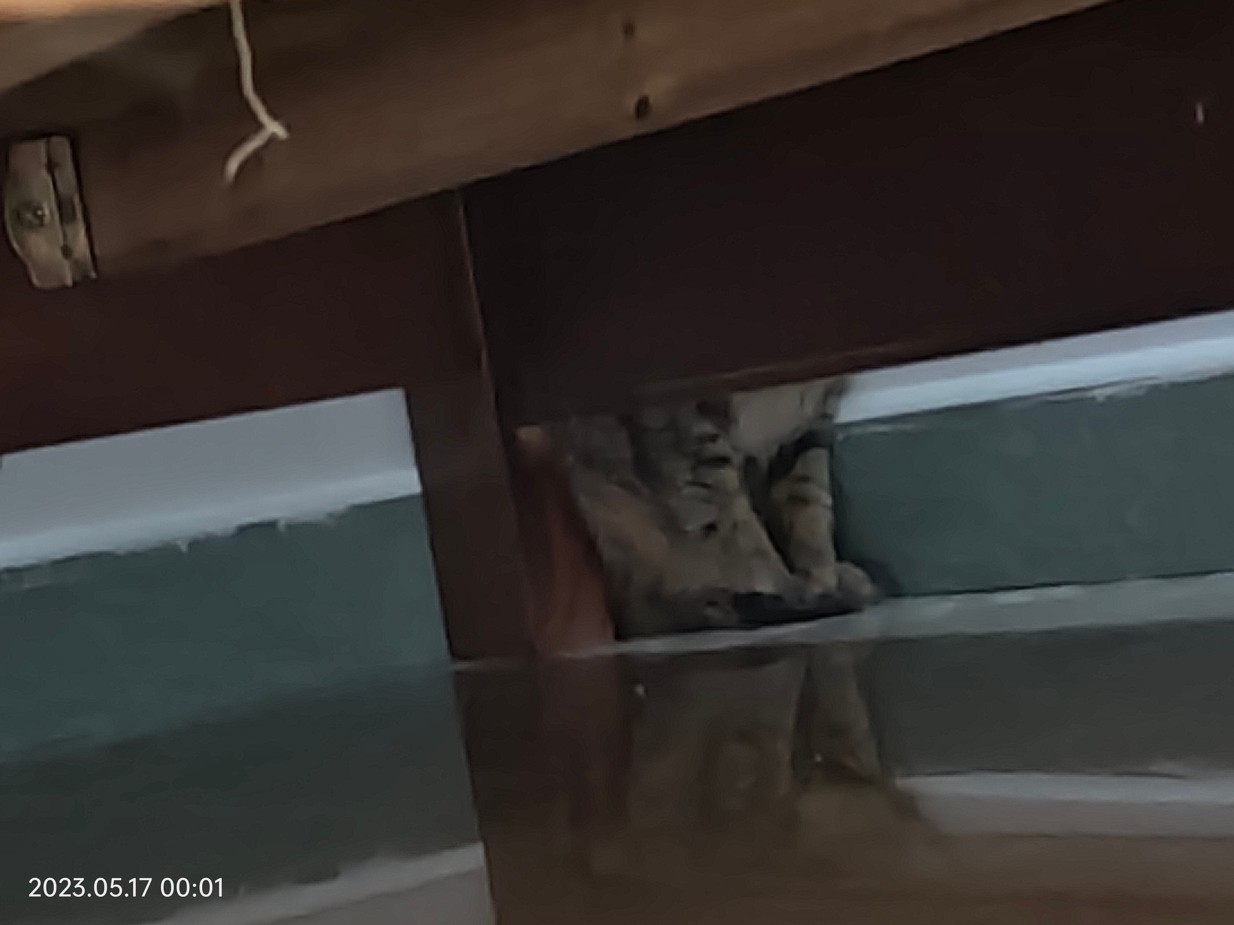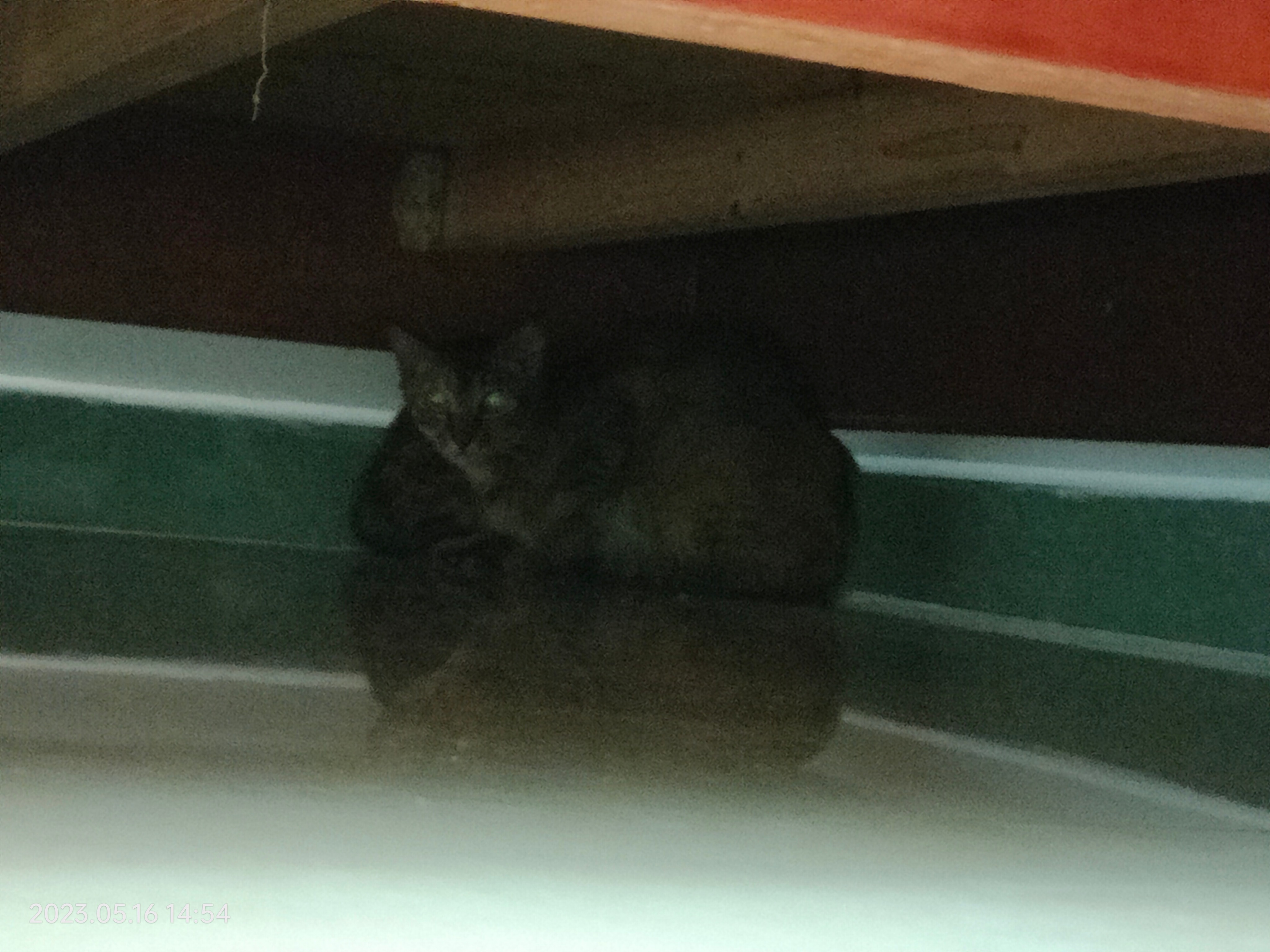 ※新たな飼い主の家に着いた直後は、このように⇩机の下やカーテンの裏に隠れて出てこなかったそうです。隠れる時も一緒の仲良し姉妹の2匹。