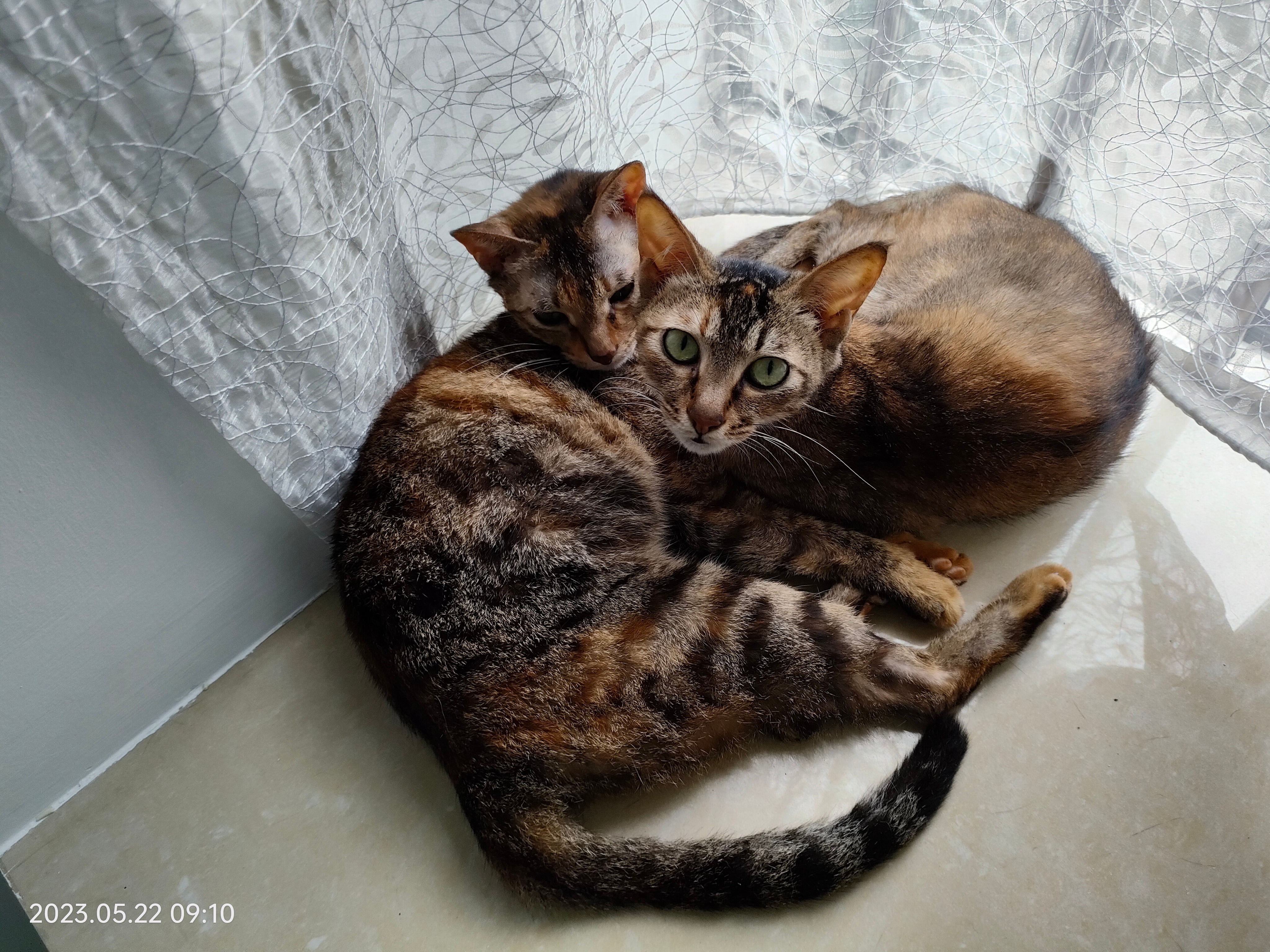 そこで、中国で他の飼い主を探しましたが、「1匹なら…」という人も多く…。ジチマオとメイメイは同じ母猫から生まれた姉妹猫。本当にいつも一緒の仲良し姉妹で、ケージ生活の困難も、2匹で共に乗り越えてきました。